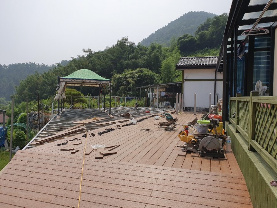 거제도 전원주택 합성목재 설치