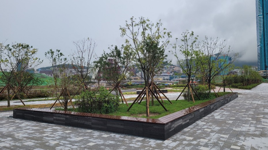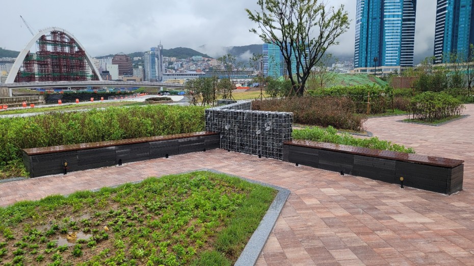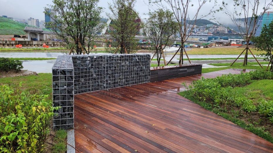 게비온 담장 과 벤치의 만남